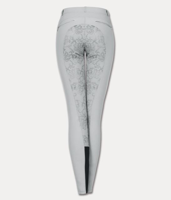 Full silicone seat, sporty elastic cuffs, insert pockets on front, decorative faux zip pockets on back, belt loops, bi-elastic material, breathable
