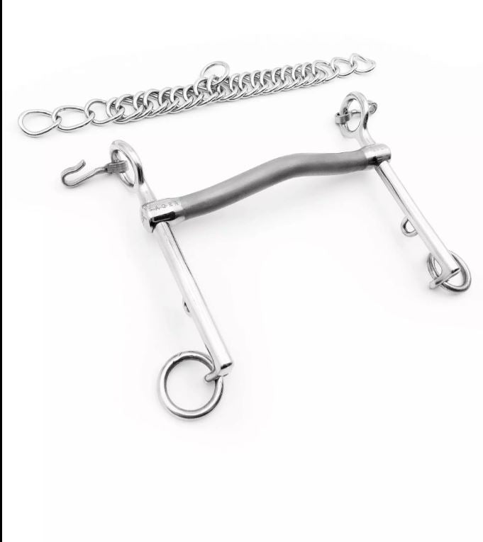 The port is bent with a 45degree angle over the tongue. This will give the tongue more freedom and encouraging the horse to be forward and work into the contact.