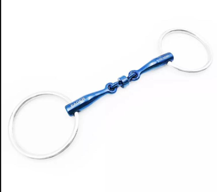 Bianca is a durable and lightweight double-jointed Titanium bit incorporating fixed rings /eggbutt side pieces.