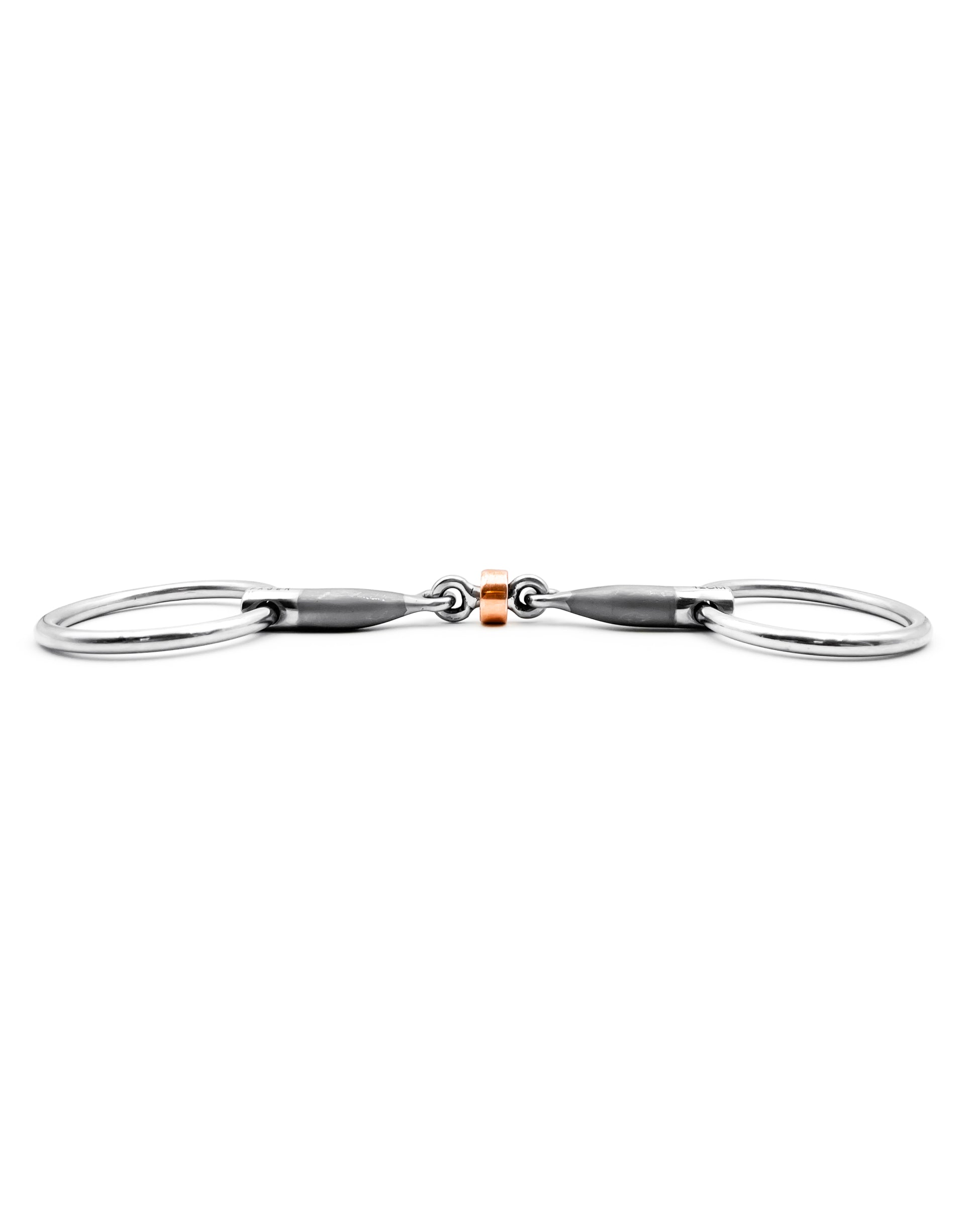 The Copper Roller is cleverly designed to be positioned lower than the joints to increase the point-pressure on the tongue. This creates pressure when your horse pulls or feels heavy in your hand without applying consistent pressure.