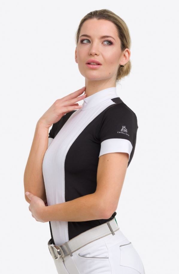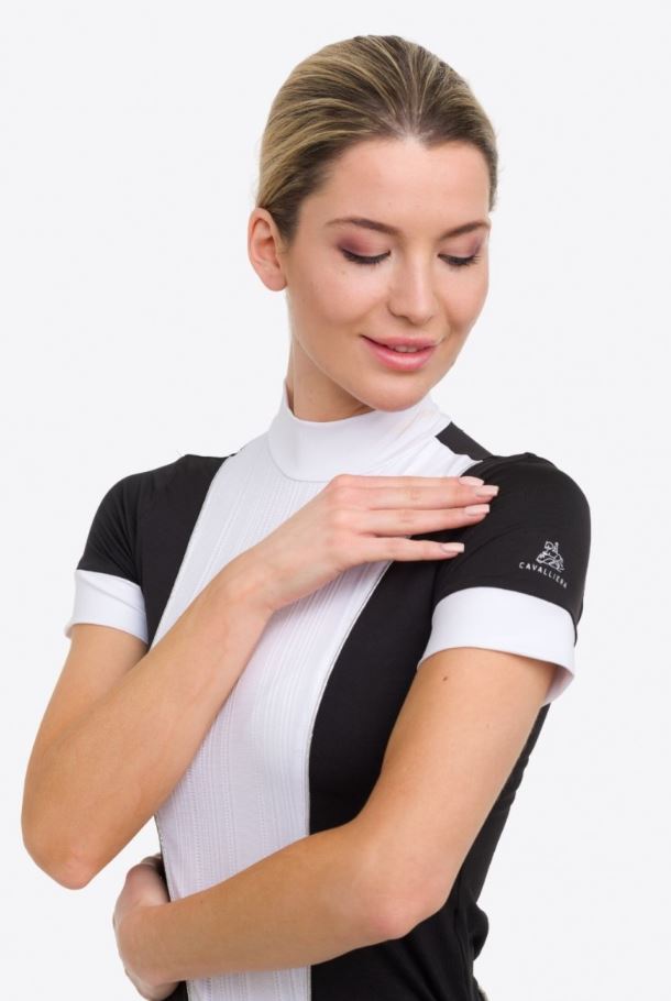 - Thanks to the high performance technical CoolP materials, it is a functional solution and at the same time the most elegant show shirt design possible. Designed with contrasted colors and unique lace layer to provide a tailored and professional look. Decorated with silver piping on the front. Choose from these chic colors: aubergine, emerald green, black.