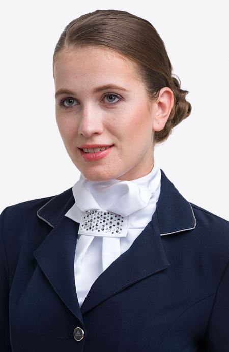 - Fresh-looking pre-tied bling stock tie with crystal details. This super stylish stock tie is made with a smooth microfiber woven matte fabric with a silky hand-feel but still a substantial enough body, to look crisp and neat for dress attire. Choose the matching show jacket: VENICE Double Front Panel Technology that features a timeless design and athletic functionality which appeals to riders of any discipline.