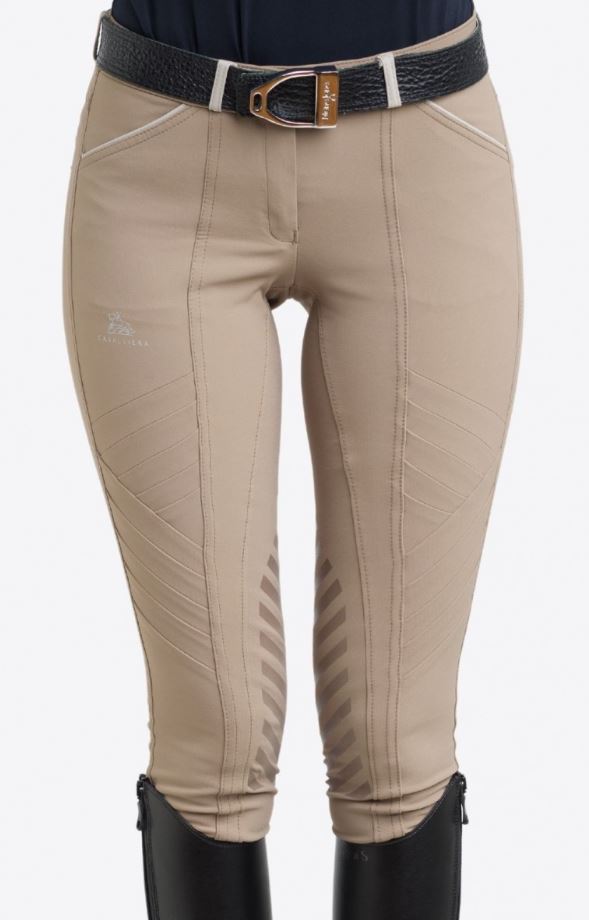 - Breeches made of performance lightware fabrics and Meryl Fiber Technology. Developed for active wearing, quick-drying, and exceptional comfort during the training. These riding breeches fit all shapes and heights and enhance the mobility of knees due to the specialized side panelling. Featuring grip technology: the silicone print on the knees provides a secure grip in the saddle and more consistent leg position without the added bulk of a full-seat layer, and an additional silicone grip on the elasticated waistband, gives fixed hold on the waist even under extreme movement during exercises. Complete with single and wide belt loops, back and deep front pockets, a stretch lycra sock on the bottom of each leg what allows boots to slip on with ease.