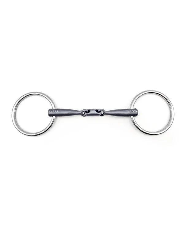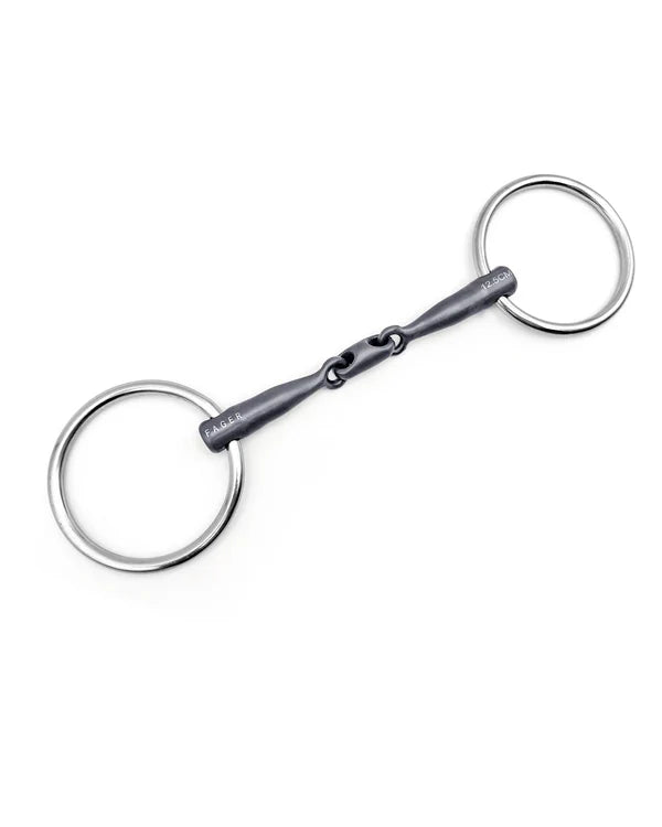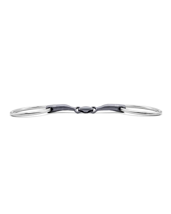 With the horse logo on the right side running forward, the joints will follow the tongue to make the pressure in the tongue more gentle. This can be good for sensitive horses who need clear but gentle signals.